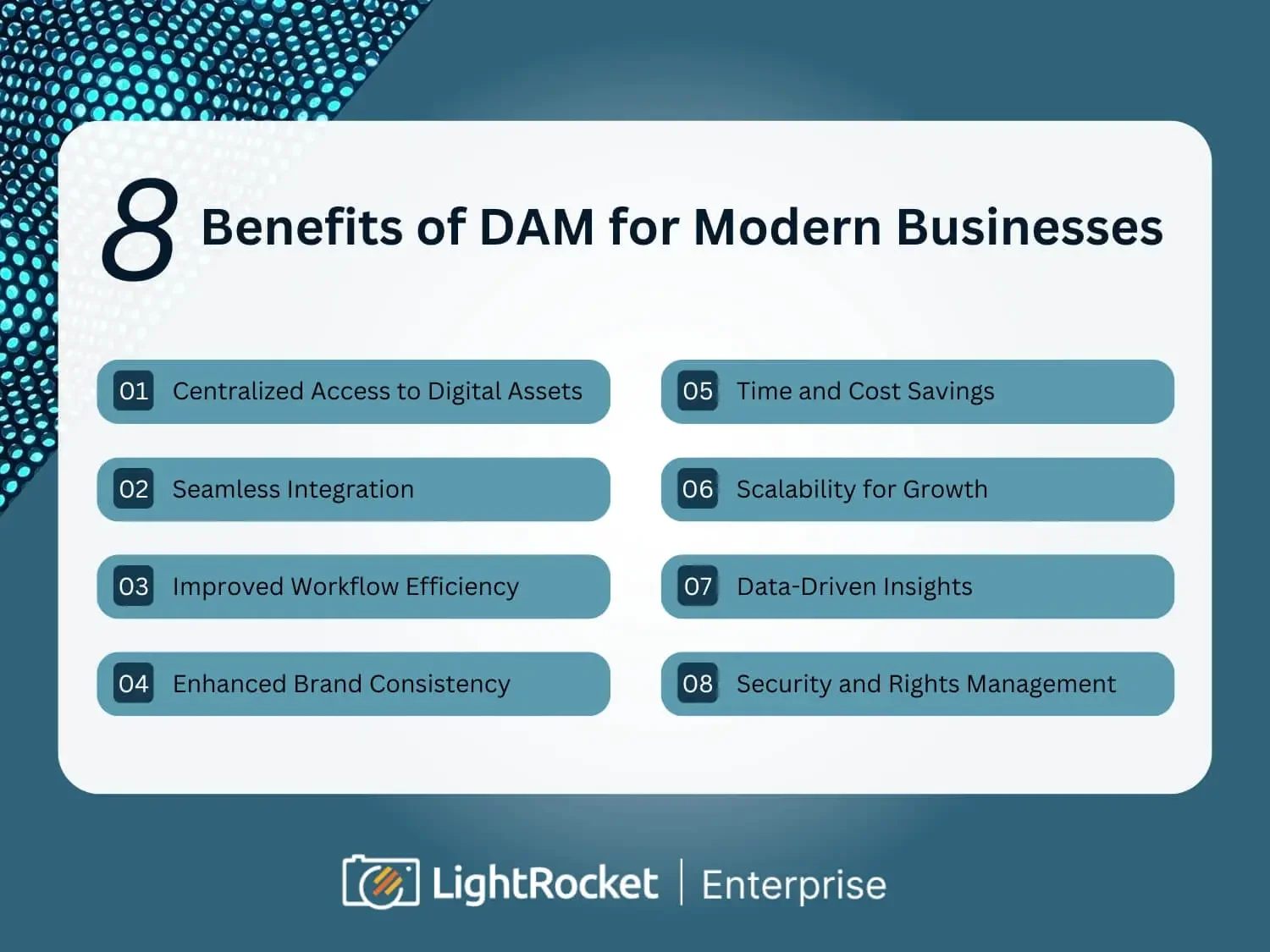To make things even simpler, let's break this example down into 8 benefits of using a DAM.